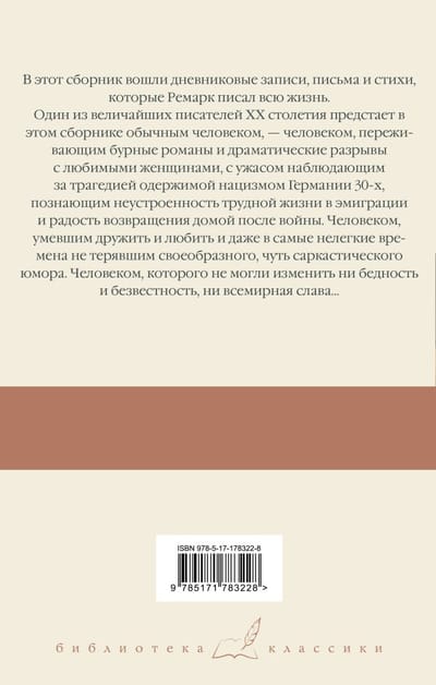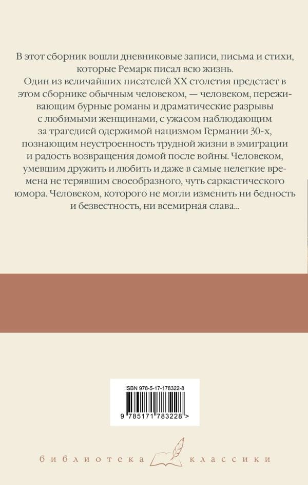 В этот сборник вошли дневниковые записи, письма и стихи, которые Ремарк писал всю жизнь.