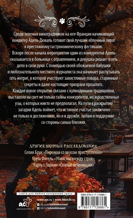 Среди зеленых виноградников на юге Франции начинающий кондитер Адель Дюваль готовит свой лучший яблочный пирог к престижному гастрономическому фестивалю. Вскоре после начала мероприятия один из конкурентов Адель оказывается в больнице с отравлением, и девушка решает взять дело в свои руки.