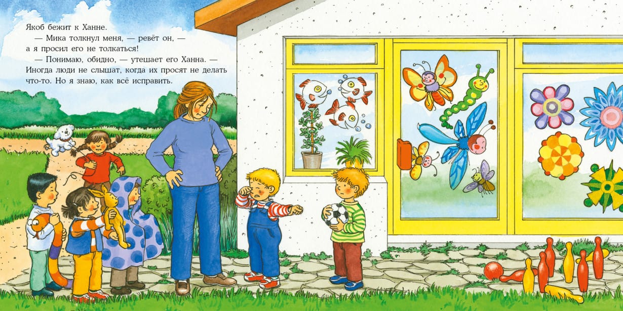 Якоб не любит, когда его толкают - даже в шутку. Но он не знает, как сказать, чтобы его точно услышали! Воспитательница Ханна учит его одному интересному приёму. Теперь даже мама точно будет слушать Якоба!