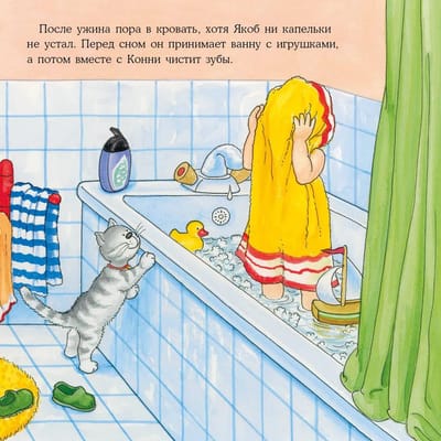 Малыши часто не хотят укладываться спать: столько игр не доиграно, столько историй недослушано. Привычные вечерние ритуалы, спокойные игры и сказка на ночь помогут уложить даже самых бодрых непосед. Вместе с Якобом ваш малыш придумает собственный ритуал отхода ко сну и научится засыпать самостоятельно.