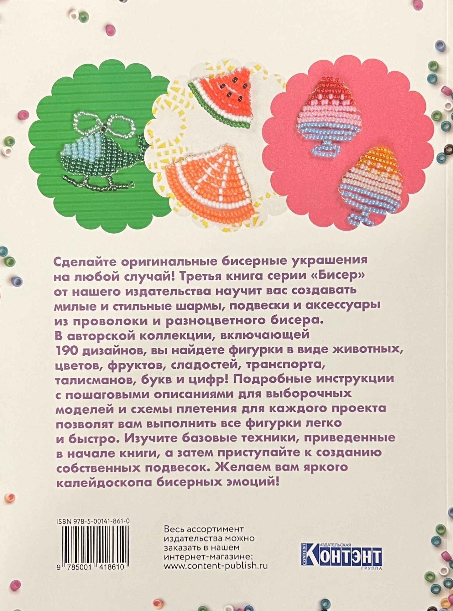 Сделайте оригинальные бисерные украшения на любой случай! Эта книга научит вас создавать милые и стильные шармы, подвески и аксессуары из проволоки и разноцветного бисера. В авторской коллекции, включающей 190 дизайнов, вы найдете фигурки в виде животных, цветов, фруктов, сладостей, транспорта, талисманов, букв и цифр! Подробные инструкции с пошаговыми описаниями для выборочных моделей и схемы плетения для каждого проекта позволят вам выполнить все фигурки легко и быстро. Изучите базовые техники, приведенные в начале книги, а затем приступайте к созданию собственных подвесок. Желаем вам яркого калейдоскопа бисерных эмоций!