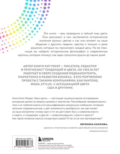 Автор книги Кит Рикер — писатель, редактор и прогнозист тенденций и цвета. Он уже 35 лет работает в сфере создания медиаконтента, маркетинга и развития бизнеса. В его портфолио — проекты с такими компаниями, как Pantone, WGSN, Stylus, Ассоциацией цвета США и другими.
