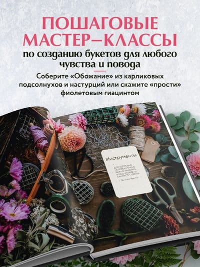 - пошаговые инструкции по созданию стильных и доступных цветочных композиций;