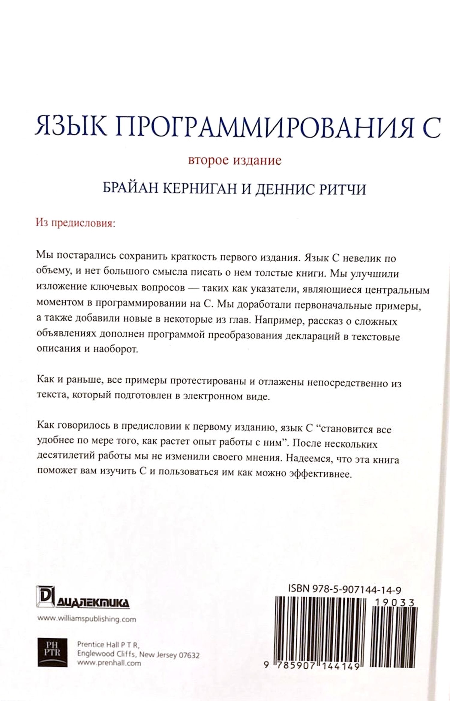 Мы постарались сохранить краткость первого издания. Язык С невелик по объему, и нет большого смысла писать о нем толстые книги. Мы улучшили изложение ключевых вопросов — таких как указатели, являющиеся центральным моментом в программировании на С. Мы доработали первоначальные примеры, а также добавили новые в некоторые из глав. Например, рассказ о сложных объявлениях дополнен программой преобразования деклараций в текстовые описания и наоборот.