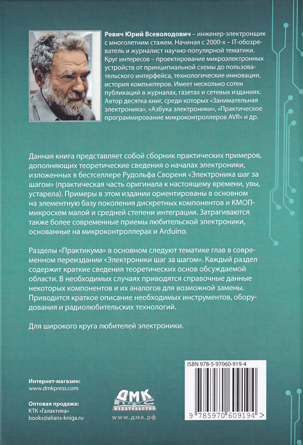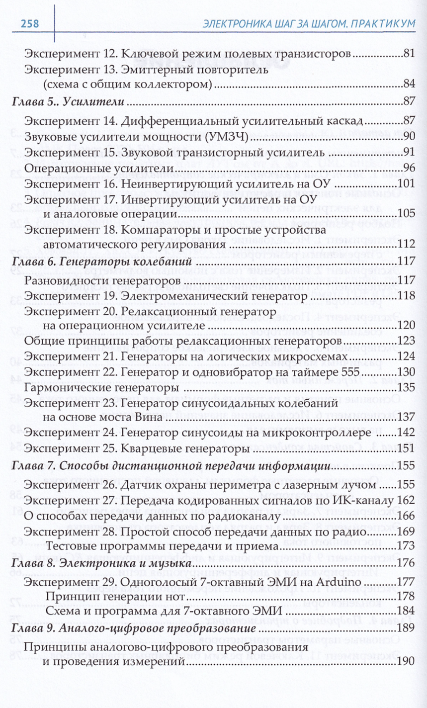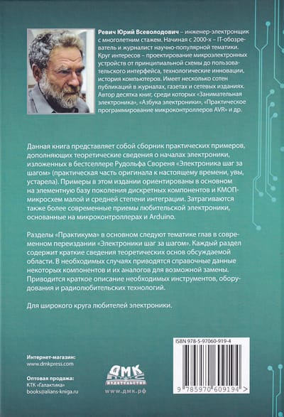 Книга «Электроника шаг за шагом. Практикум» представляет собой сборник практических примеров, дополняющих теоретические сведения о началах электроники, изложенные в книге Р. А. Свореня «Электроника шаг за шагом». Подобные примеры имеются и в оригинальных изданиях «Электроники шаг за шагом», но к настоящему времени они устарели. Примеры в данном издании ориентированы в основном на элементную базу поколения дискретных компонентов и КМОП-микросхем малой и средней степени интеграции. Затрагиваются также более современные приемы любительской электроники, основанные на микроконтроллерах и Arduino. Разделы «Практикума» в основном следуют тематике глав в современном переиздании «Электроники шаг за шагом». Каждый раздел содержит краткие сведения теоретических основ обсуждаемой области. В необходимых случаях приводятся справочные данные некоторых компонентов и их аналогов для возможной замены. Приводится краткое описание необходимых инструментов, оборудования и радиолюбительских технологий.