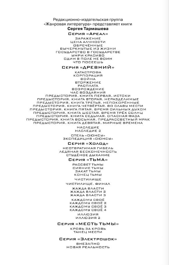 Новый роман от автора культовых циклов «Древний», «Тьма» и «Каждому своё». Продолжение бестселлера «Электрошок. Внезапно». С тех пор как пропало электричество, прошло уже больше недели. В городе царят хаос и анархия, по улицам бродят банды вооружённых отморозков, а всякая власть сократилась до радиуса полёта пули. Запасы топлива и продуктов иссякают, зима приближается, и с каждым днём обогревать остывшие дома становится всё сложнее. Пока наивные глупцы тешат себя надеждой на прекращение блэкаута и возвращение к прежней жизни, те, что посмышлёнее, уже поняли: прежний мир ушёл навсегда. Всё чаще и чаще они встают перед вопросом: чем ты готов пожертвовать ради выживания?