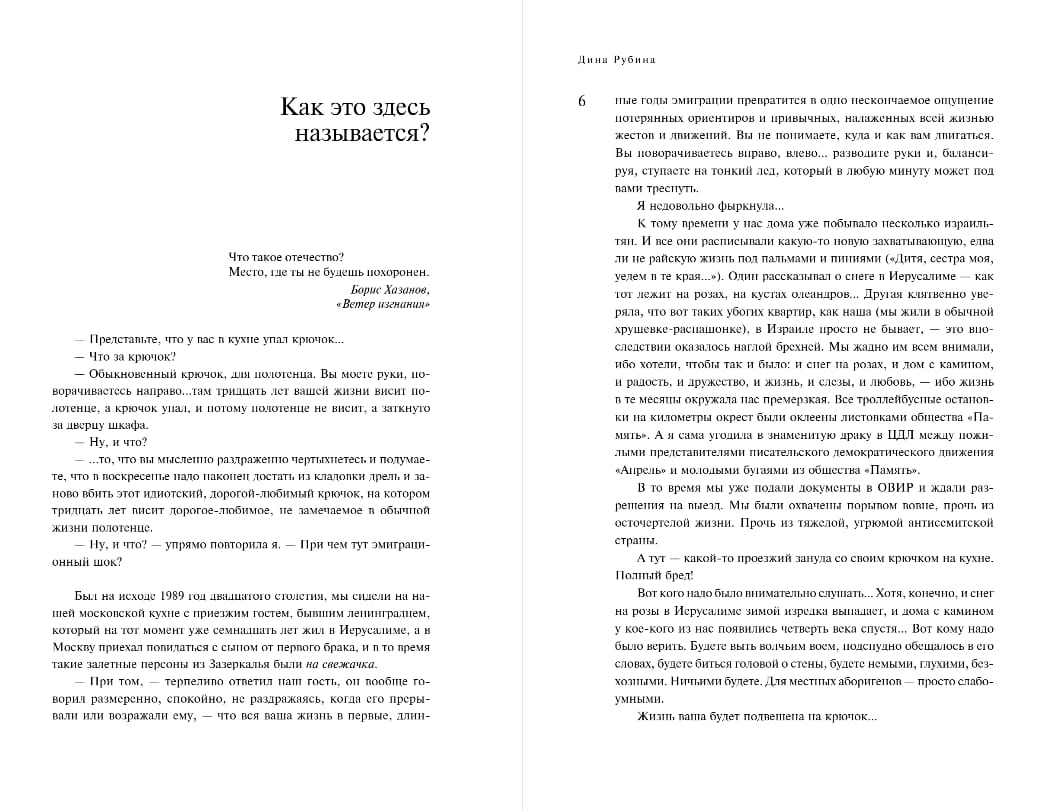 Эмиграция – явление старое, пережившее пик поэтизации в годы Первой мировой войны и сильно романтизированное благодаря Василию Кандинскому, Ивану Бунину и Федору Шаляпину. Родину покидают всегда не просто так, - это огромное испытание для характера, определенный слом и сдвиг судьбы, вызов, который человек бросает и самому себе, и миру. Через эмиграцию прошли крупнейшие художники начала прошлого века и современности, не миновала ее и Дина Рубина, чье творчество стало безусловным камертоном русской литературы конца века. В этой книге автор специально собрал истории, так или иначе связанные с темой обретения новой земли и отказа от земли старой. В них есть и юмор, и печаль, и ирония, и сострадание, обнимающее всех, с кем это случилось только что или кому это предстоит. Опыт эмиграции не может быть универсальным, и вместе с тем он - переданный от большого художника - имеет свойство помогать и поддерживать. Именно ради этого и была придумана эта книга.