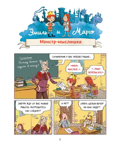 Как здорово, когда рядом есть друзья, всегда готовые не только пошалить, но и прийти на помощь! Вместе гораздо проще отыскать лучшие мыслишки для сочинения, устроить лучший день рождения, разобраться с коварными Бзззошибкам или внезапной контрольной. И даже проучить заносчивого двоюродного братца, уверенного, что все его выходки сойдут ему с рук! Потому что друзья Эмиля и Марго — самые настоящие монстры. Монстры, которых мечтает встретить каждый ребёнок! С таким друзьями весело и совсем не страшно!