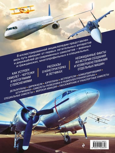 Вас ждут дельтапланы, дирижабли, истребители и бомбардировщики, штурмовики, самолеты-разведчики, пассажирские и транспортные самолеты, интересные истории о разных моделях летательных аппаратов, фотографии, чертежи и карты. Вы узнаете, как устроен самолет, прочтете увлекательные рассказы о конструкторах и летчиках, познакомитесь с интересными фактами из истории создания и усовершенствования отдельных машин.