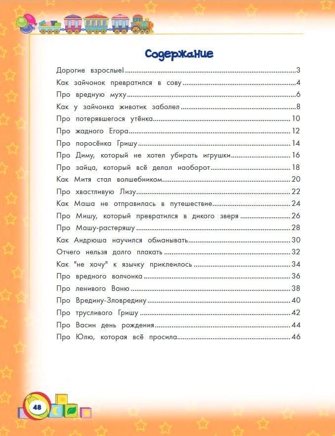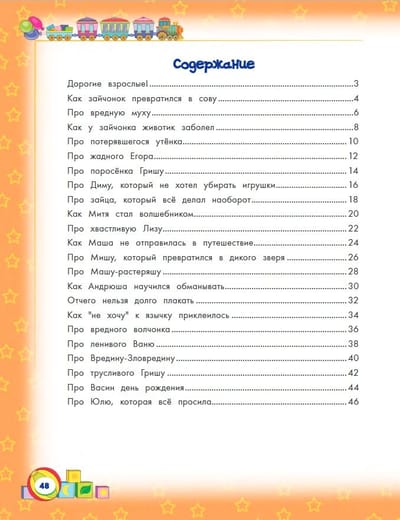 Хотите, чтобы ваш малыш научился себя хорошо вести, вовремя ложился спать, убирал свои игрушки, не капризничал? Не нужно делать замечания и ругать ребёнка. Лучше показать с помощью сказки, как это выглядит со стороны. В этой книге собраны 22 поучительные сказки, решающие основные проблемы поведения детей в возрасте от 2 до 5 лет.