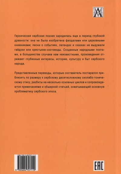 Героическая сербская поэзия зародилась еще в период глубокой древности: она не была изобретена феодалами или церковными книжниками; песни о событиях, легендах и сказках не выдумали гайдуки или крестьяне-скотоводы. Созданные народными поэтами, в большинстве случаев нам неизвестными, произведения отражают глубинные интересы, историю, культуру и быт сербского народа. Представленные переводы, которые составитель постарался приблизить по размеру к сербскому десятисложному силлабо-тоническому стиху, разбиты на несколько основных циклов и сопровождаются примечаниями и обширной статьей, охватывающей основную проблематику сербского эпоса. Для филологов, культурологов, историков и всех интересующихся народным эпосом.