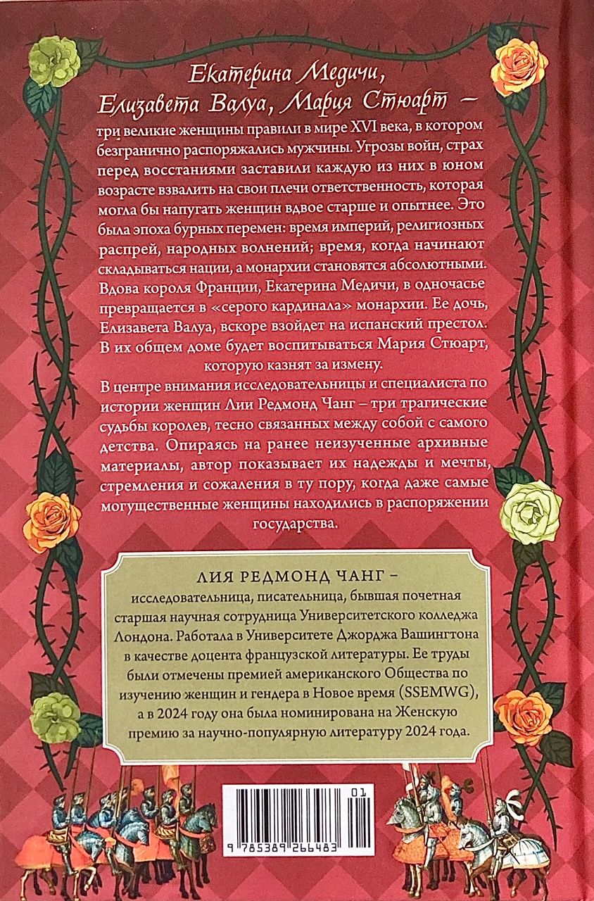 История Екатерины Медичи начинается в осажденном монастыре, а закончится подле французского престола. Ее будут почитать так же сильно, как и ненавидеть. История Марии Стюарт начинается в Шотландии и закончится в Англии. Заключенная в тюрьму, королева-предательница будет медленно стареть в одиночестве, с тоской вспоминая свое безмятежное детство, прежде чем ее поведут на эшафот и обезглавят за участие в заговоре. История Елизаветы Валуа начинается во Франции, а закончится в Испании. Любимая дочь французского короля, она станет уважаемой всеми испанской королевой и трагически умрет еще совсем в юном возрасте. Корона могла вознести на вершину. Эта же корона могла уничтожить.