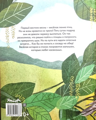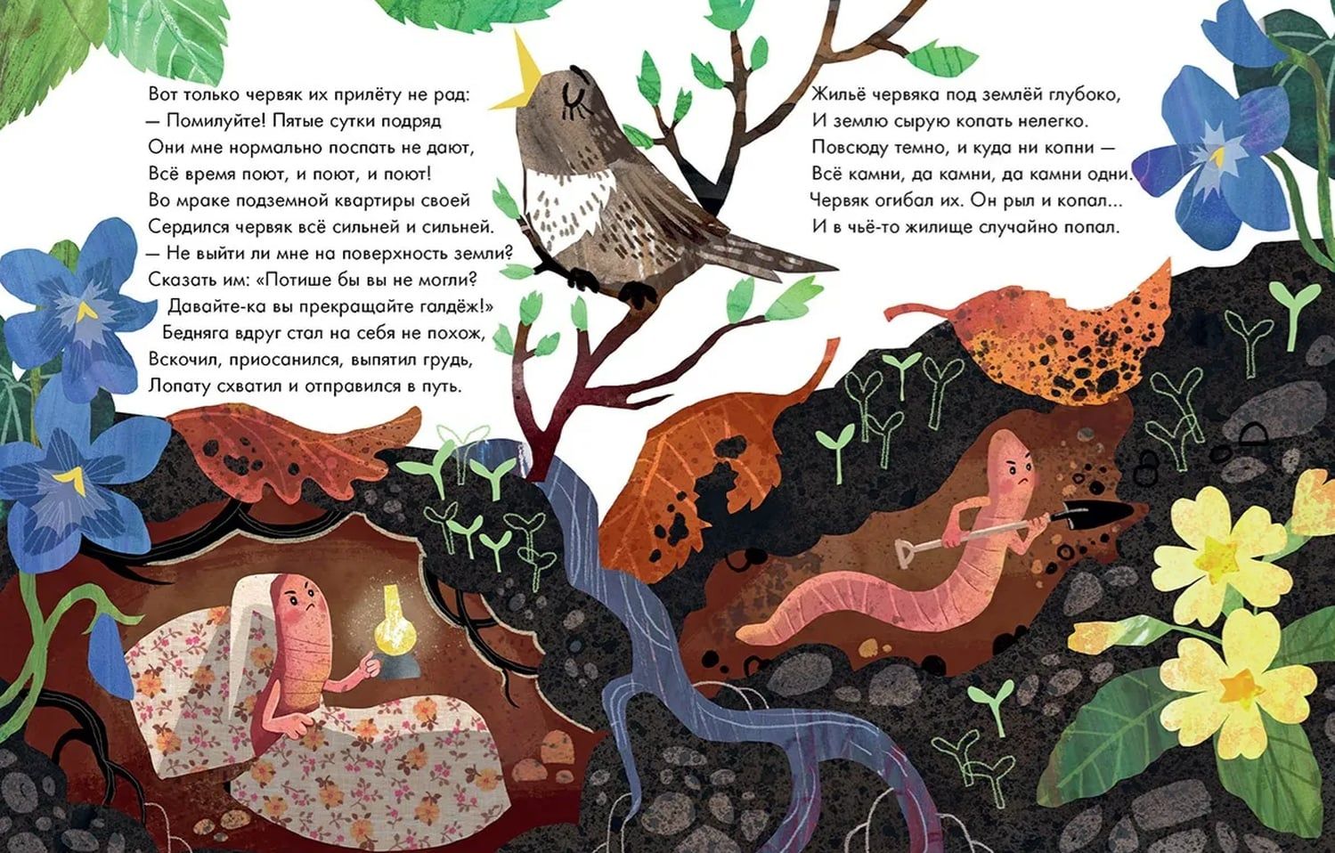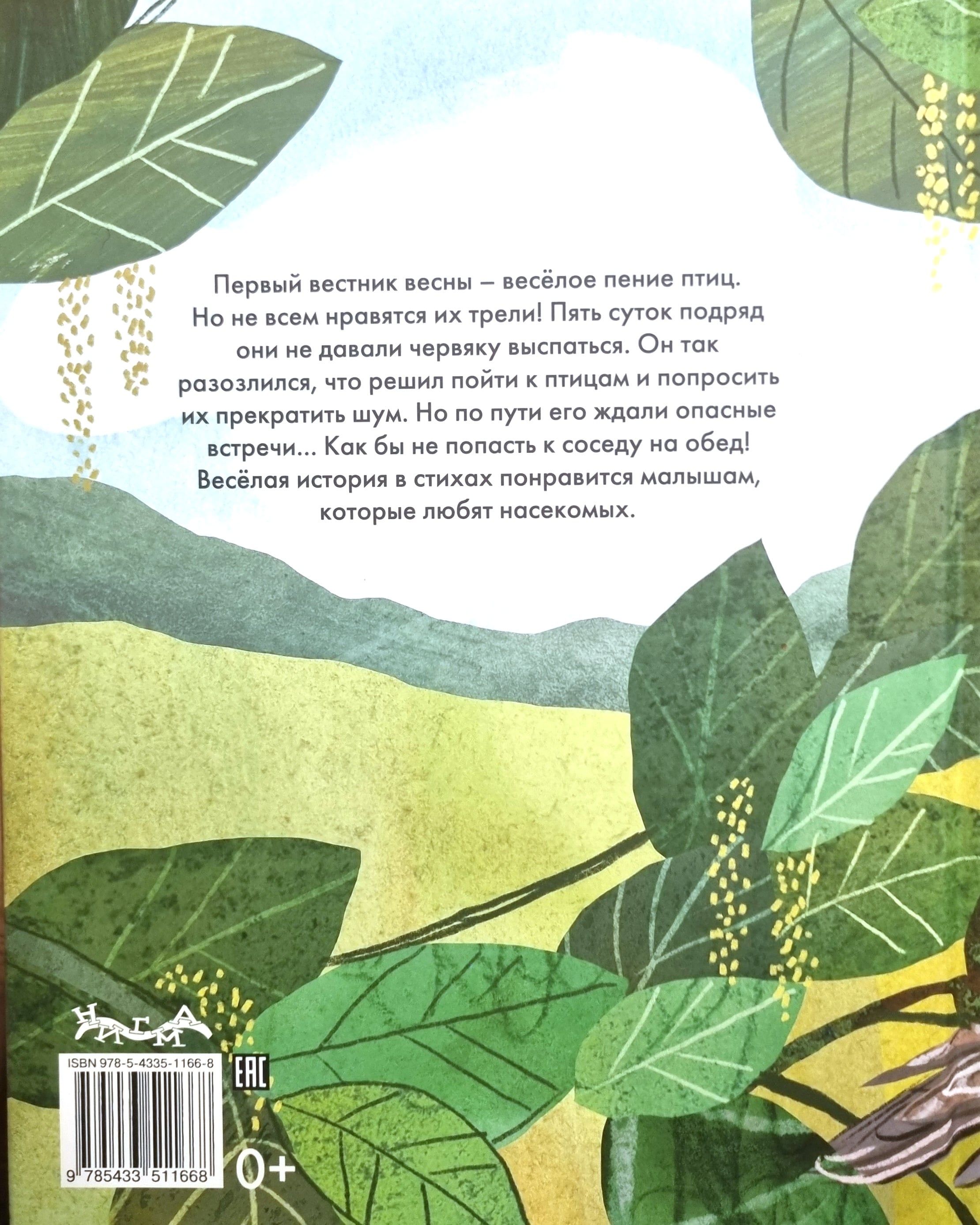 Первый вестник весны — весёлое пение птиц. Но не всем нравятся их трели! Пять суток подряд они не давали червяку выспаться. Он так разозлился, что решил пойти к птицам и попросить их прекратить шум. Но по пути его ждали опасные встречи… Как бы не попасть к соседу на обед!