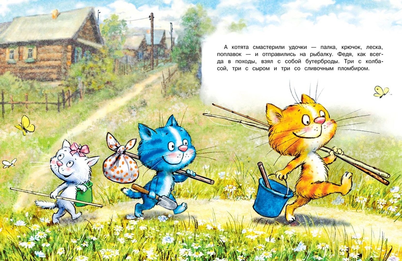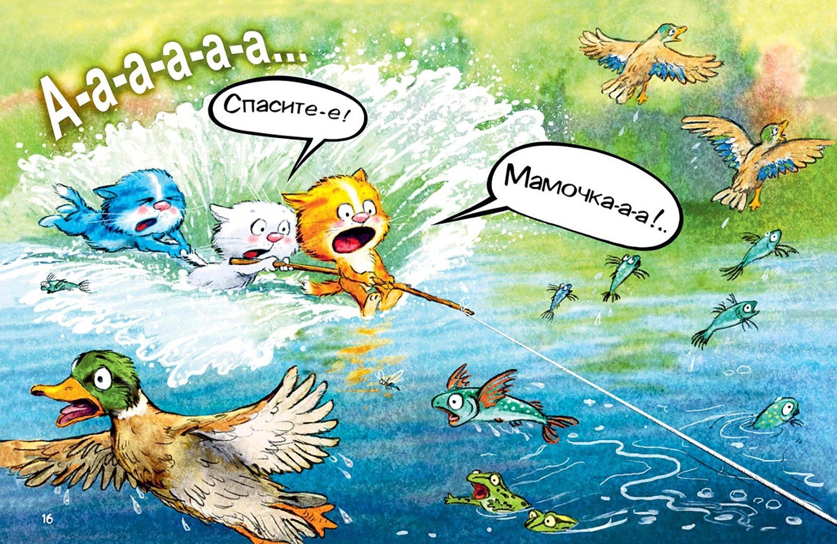 В самой обыкновенной деревне Котофеевке живут самые обыкновенные коты: рыжие, белые и даже… синие! Однажды жарким летним днём трое котят — Вася, Тося и Федя, — отправились удить рыбу на речку Камышку. А кто попался им на крючок, вы узнаете, прочитав новую книжку из серии «У нас в Котофеевке».