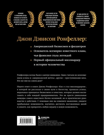 Ищите ответ в книге Джона Рокфеллера «Как я стал миллиардером», в которой он рассказал о своем пути к богатству, правилах успеха, моральных принципах бизнесмена и качествах, которые должен воспитывать в себе каждый предприниматель. Это не просто уникальные мемуары самого известного богача вселенной, но и практическое руководство к действию. С помощью них вы измените мышление, увидите прибыльные возможности, научитесь достигать поставленных целей и узнаете, как превратить любую неудачу в новую возможность.