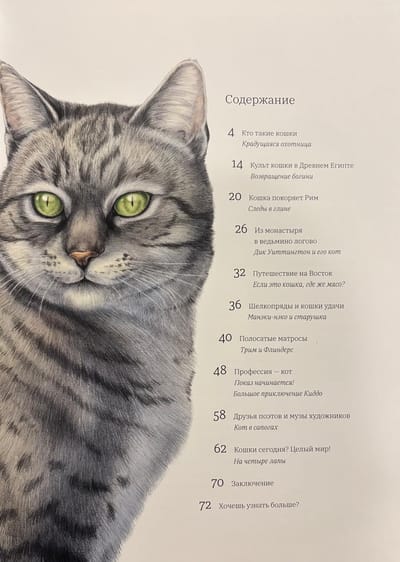 Египетская богиня, штатный член корабельной команды, персонаж сказок и мифов, любимое домашнее животное — без кошки жизнь человека немыслима! На протяжении многих тысяч лет кошки занимали прочное место в доме, во дворе и в сердце человека. Приглашаем вас совершить вместе с кошкой путешествие во времени и пространстве — от гостьи у костра первобытных людей до прислужницы ведьм, почтовой служащей и звезды ютуба с миллионами просмотров. Эта книга показывает захватывающую картину того, каким непростым путём кошка пришла к нам — и осталась навеки!