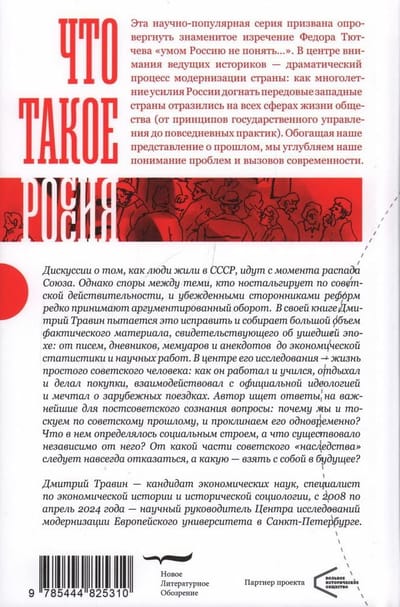 В центре его исследования — жизнь простого советского человека: как он работал и учился, отдыхал и делал покупки, взаимодействовал с официальной идеологией и мечтал о зарубежных поездках. Автор ищет ответы на важнейшие для постсоветского сознания вопросы: почему мы и тоскуем по советскому прошлому, и проклинаем его одновременно? Что в нем определялось социальным строем, а что существовало независимо от него? От какой части советского «наследства» следует навсегда отказаться, а какую — взять с собой в будущее?