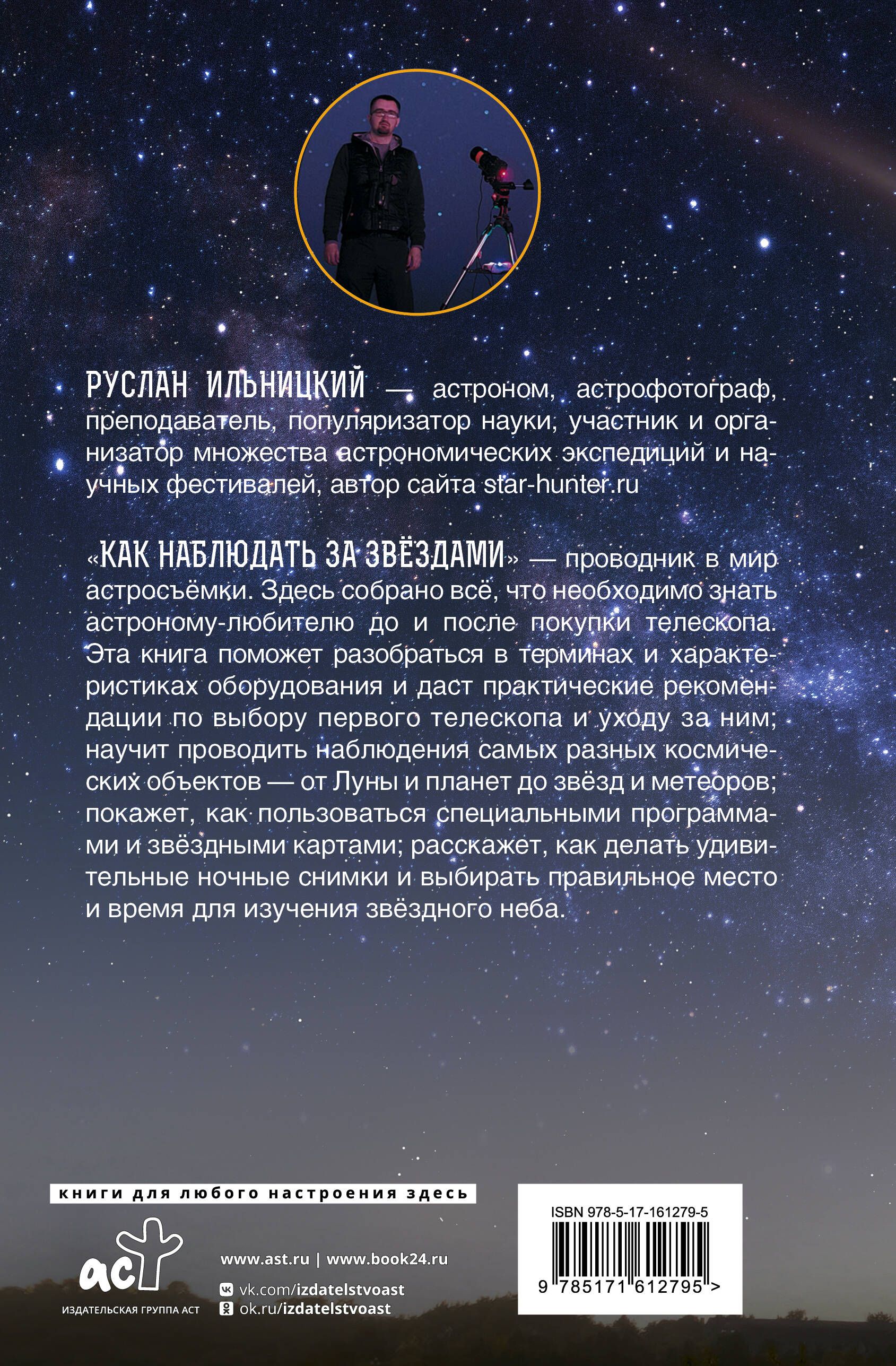 «Как наблюдать за звёздами» — проводник в мир астросъёмки. Здесь собрано всё, что необходимо знать астроному-любителю до и после покупки телескопа. Эта книга поможет разобраться в терминах и характеристиках оборудования и даст практические рекомендации по выбору первого телескопа и уходу за ним; научит проводить наблюдения самых разных космических объектов — от Луны и планет до звёзд и метеоров; покажет, как пользоваться специальными программами и звёздными картами; расскажет, как делать удивительные ночные снимки и выбирать правильное место и время для изучения звёздного неба.
