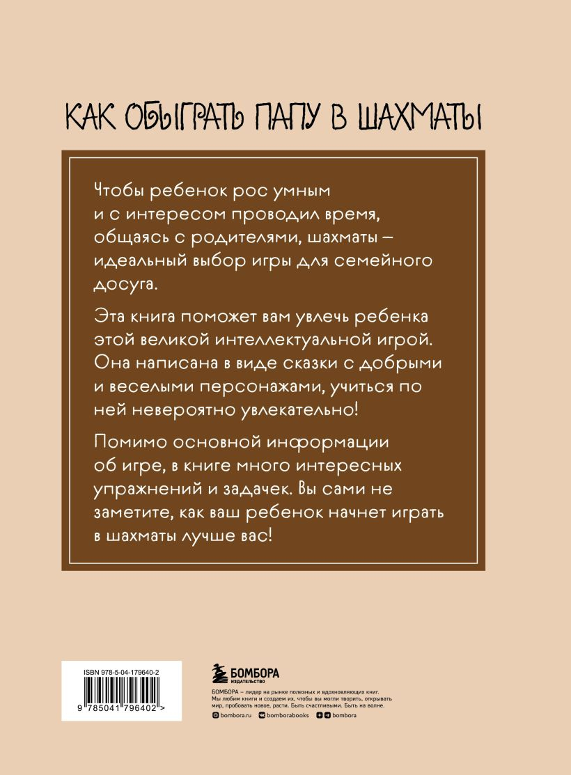Эта книга поможет вам увлечь ребенка этой великой интеллектуальной игрой. Она написана в виде сказки с добрыми и веселыми персонажами, учиться по ней невероятно увлекательно! Это настоящее приключение! Помимо основной информации об игре, в книге много интересных упражнений и задачек. Вы сами не заметите, как ваш ребенок начнет играть в шахматы лучше вас!
