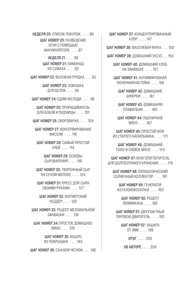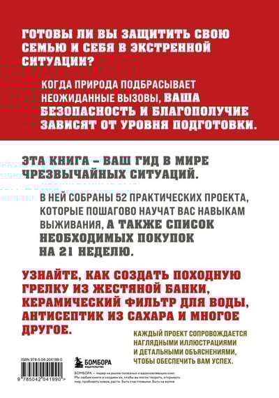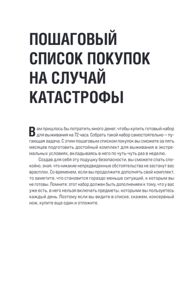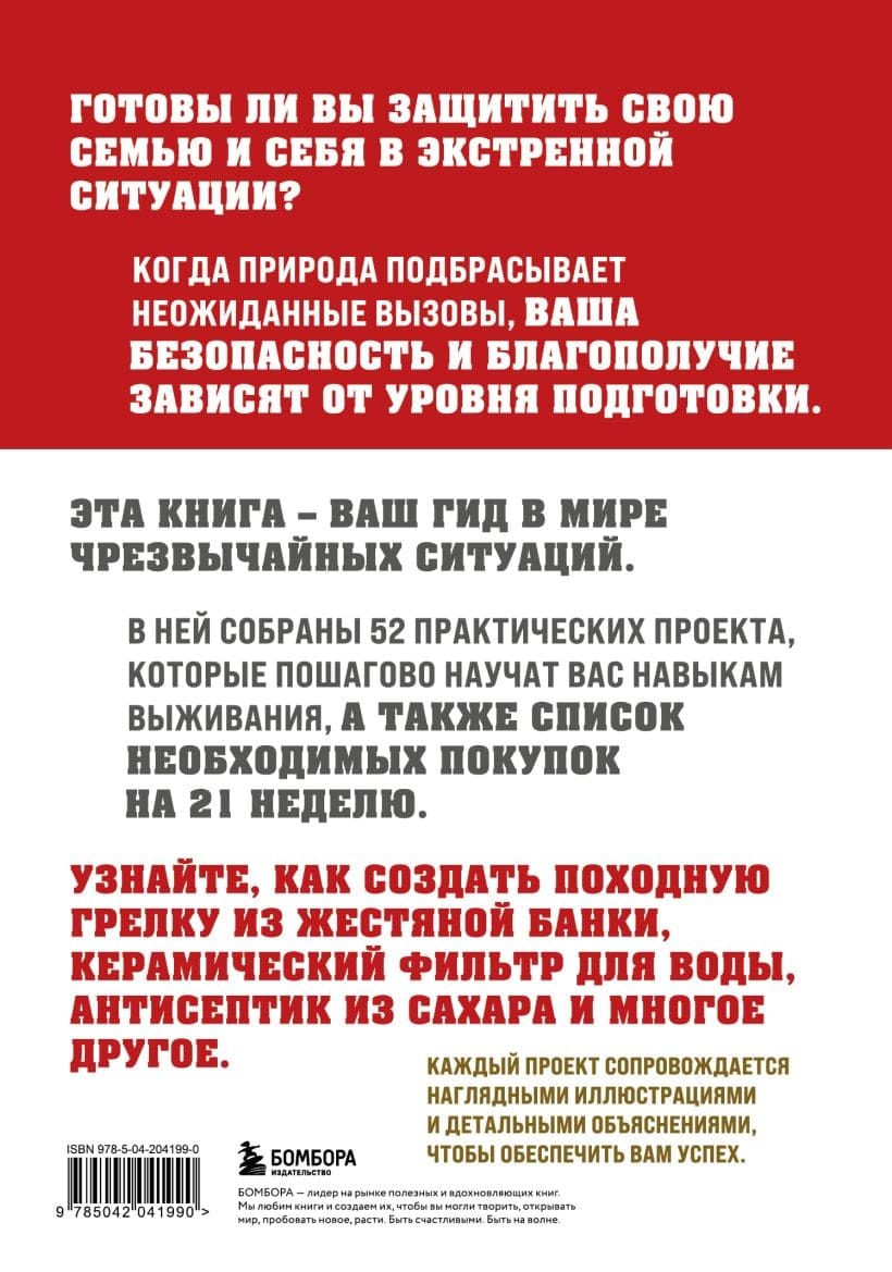 Эта книга — ваш гид в мире чрезвычайных ситуаций. В ней собраны 52 практических проекта, которые пошагово научат вас навыкам выживания, а также список необходимых покупок на 21 неделю.