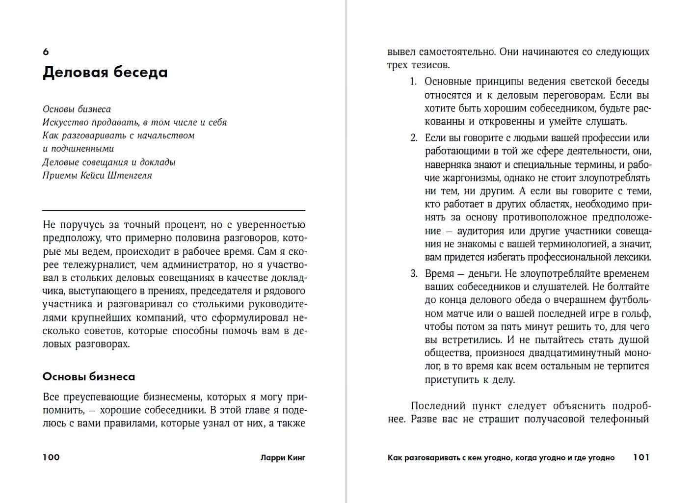 Ларри Кинг — один из известнейших в США людей — много лет вел популярное ток-шоу телекомпании CNN, быть его гостем считали за честь виднейшие деятели политики, бизнеса, спорта и искусства. В книге "Как разговаривать с кем угодно, когда угодно и где угодно" мастер общения Ларри Кинг делится с читателями своими секретами.