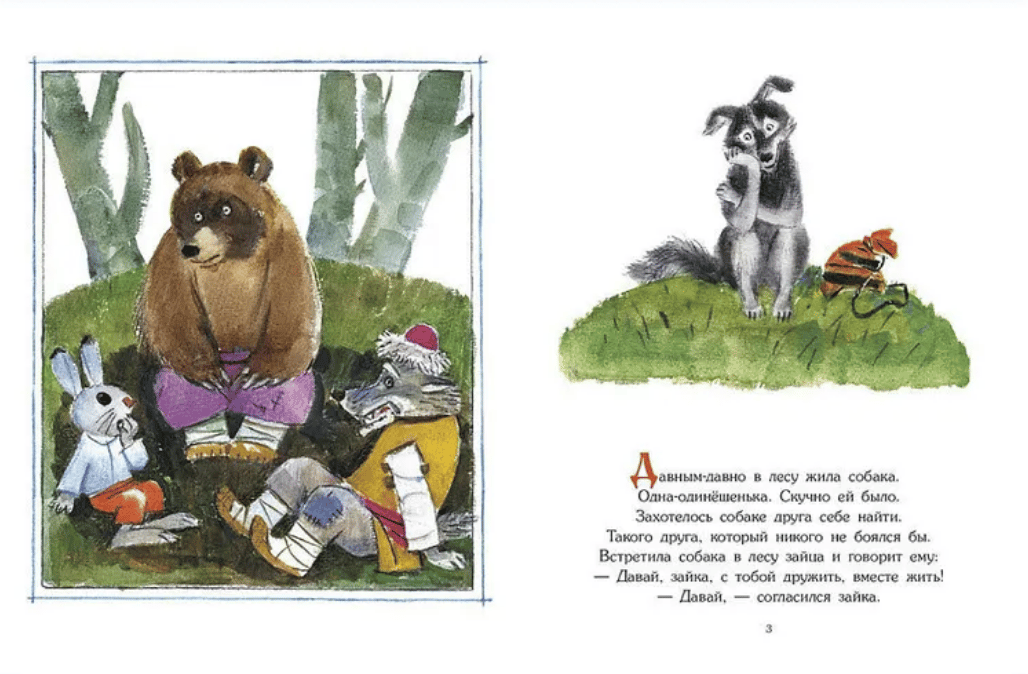 Искала себе собака сильного друга. Но зайка боится волка, волк боится медведя, а медведь боится человека. Тогда стали дружить человек и собака, и вместе они теперь никого не боятся! Короткая мордовская сказка в иллюстрациях Михаила Карпенко позабавит и удивит самых маленьких читателей.