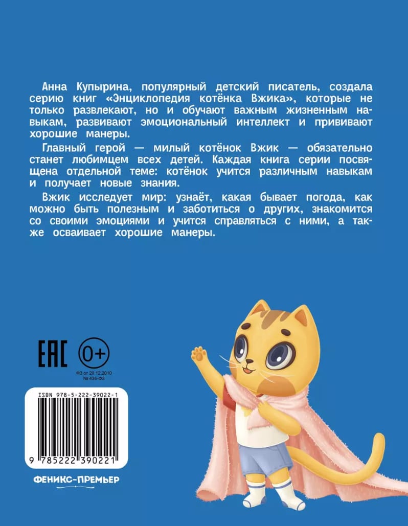 Анна Купырина, популярный детский писатель, создала серию книг «‎Энциклопедия котёнка Вжика»‎, которая не только развлекает, но и учит важным жизненным навыкам, формирует эмоциональный интеллект и помогает развить хорошие манеры и поведение.