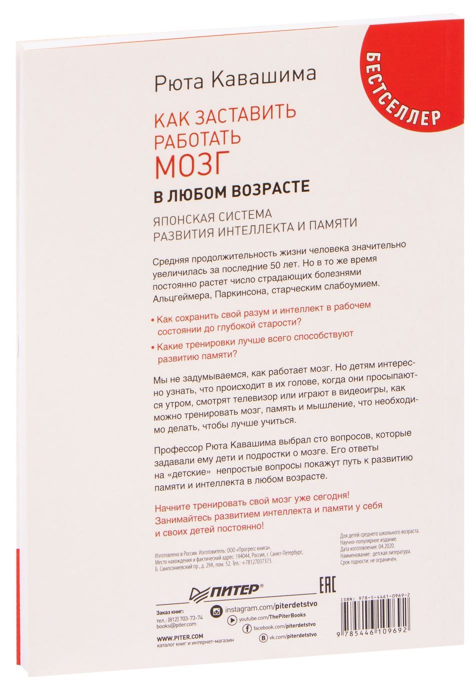 Рюта Кавашима выбрал сто вопросов, которые задавали ему дети и подростки. Простые ответы на непростые вопросы покажут путь к развитию памяти и интеллекта в любом возрасте. Отвечая на «детские» вопросы Кавашима рассказывает о работе мозга, его тренировке и условиях эффективности до глубокой старости. Начните тренировать свой мозг уже сегодня! Занимайтесь развитием интеллекта и памяти у себя и своих детей постоянно!