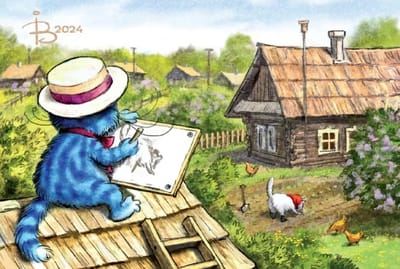 Открытка. Синие коты. Живопись