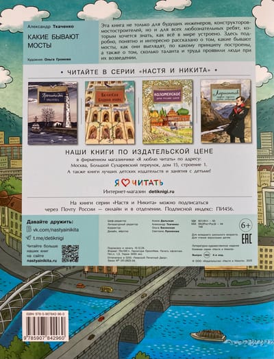 Эта книга не только для будущих инженеров, конструкторов-мостостроителей, но и для всех любознательных ребят, которым хочется знать, как всё в мире устроено. Здесь подробно, понятно и интересно рассказано о том, какие бывают мосты, как они выглядят, по какому принципу построены, а также о том, сколько таланта и труда проявили люди при их возведении.