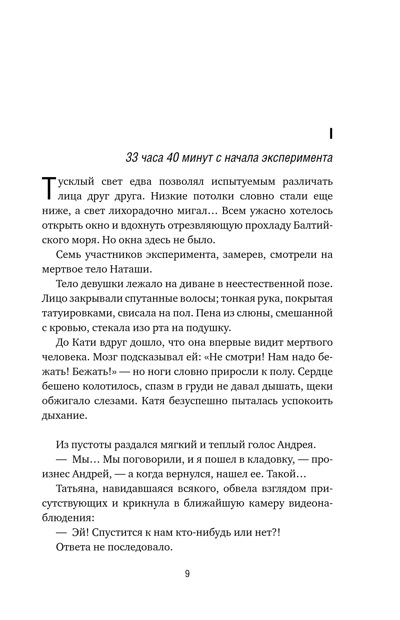 Психологический триллер и детектив под одной обложкой. Профессор психиатрии Виктор Мещерский проводит необычный социальный эксперимент: собирает в подвале загородного дома восемь человек — преступников и их жертв. Чтобы предотвратить насилие и контролировать ситуацию, на участников надеты браслеты, бьющие электрическим током, а по всем комнатам развешаны камеры видеонаблюдения.