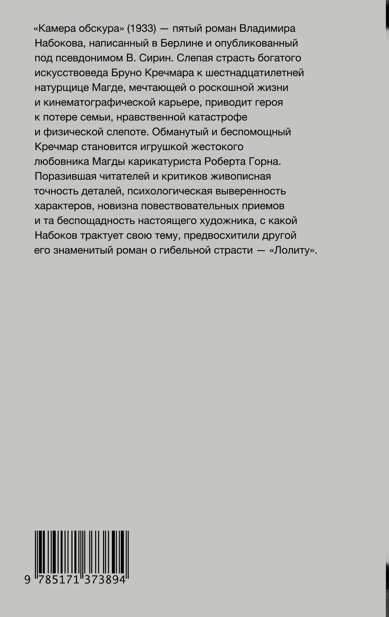 «Камера обскура» (1933) — пятый роман Владимира Набокова, написанный в Берлине и опубликованный под псевдонимом В. Сирин.