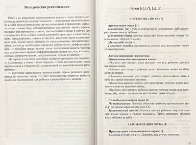 Исправление недостатков звукопроизношения — одна из важнейших задач логопеда. В последнее время специалисты все чаще замечают у дошкольников нарушения не только звуков позднего онтогенеза (свистящих, шипящих, соноров и аффрикат), но и звкуков раннего онтогенеза, таких как [к], [г], [т], [д], [х]. В пособии предложена картотека заданий, направленных на исправление дефектов произношения звуков раннего онтогенеза у детей. Представлен разнообразный практический материал по постановке звука, его автоматизации и дифференциации в слогах, словах, словосочетаниях, предложениях, стихах и текстах. Пособие адресовано логопедам, воспитателям, родителям детей с нарушенным звукопроизношением.