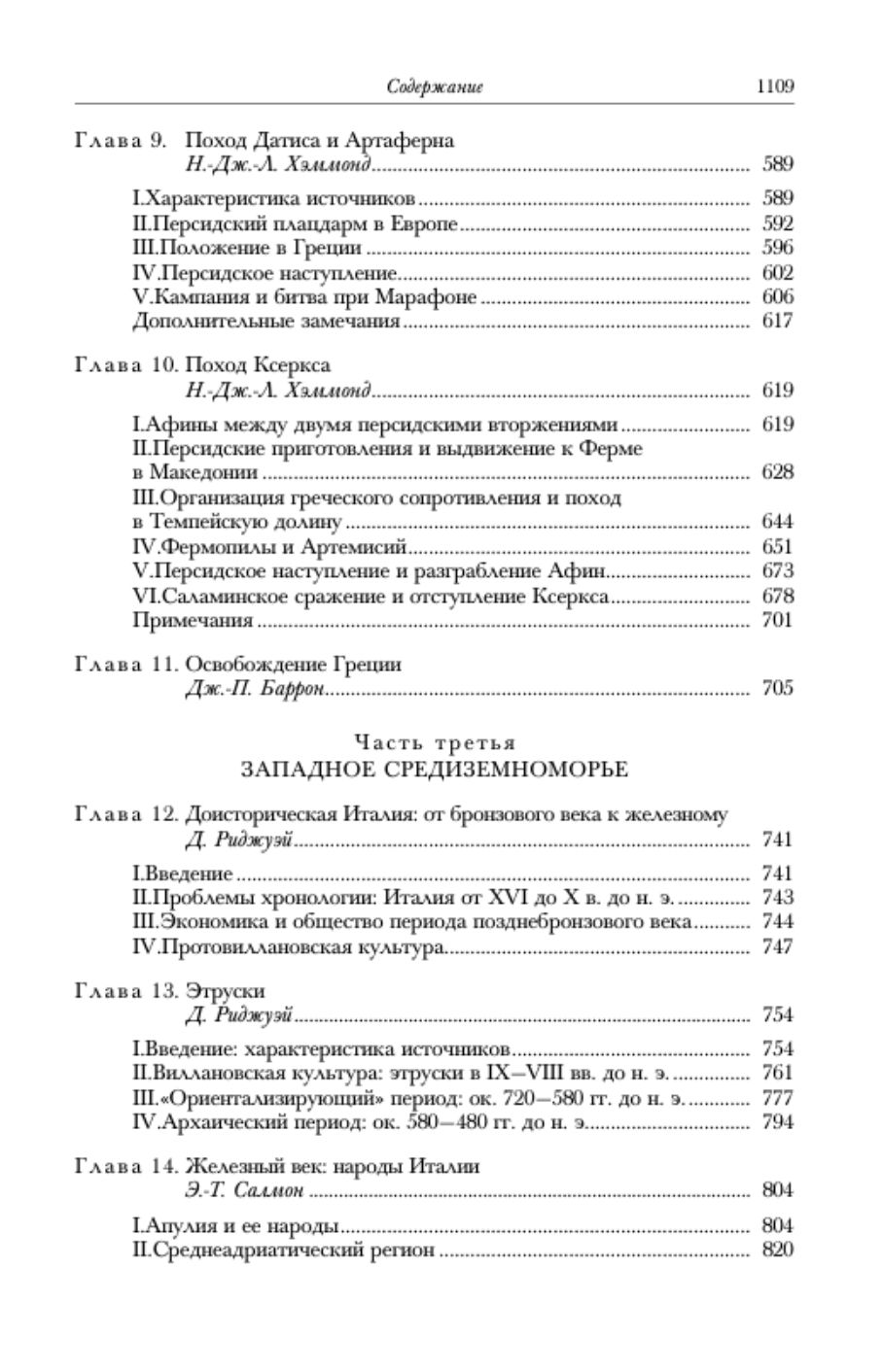 Охватываемый данным томом период был временем таких событий и таких исторических перемен, которые имели для Средиземноморского мира колоссальное значение. В первой части книги рассматривается ранняя история мидийцев и персов, возникновение и усиление Персидской державы, основные регионы, входившие в ее состав, а также история ее экспансии в период царствования Кира, Дария и Ксеркса — вплоть до момента, когда эта великая империя достигла пределов своего роста. Вторая часть посвящена истории Эллады, где в течение рассматриваемого периода Спарта превратилась в лидера военно-политической коалиции греческих городов-государств, а Афины прошли путь от просвещенной тирании до умеренной демократии с ее предпринимательской активностью и политической дальновидностью. Столкновение между Персидской империей, почти достигшей естественных пределов своего расширения, и союзом свободолюбивых и находившихся на подъеме греческих полисов было неизбежным. В важнейших главах настоящей книги излагаются причины и ход восстания ионийских греков против персидского господства, а также история двух персидских вторжений в Элладу, включая три эпические битвы — Марафонскую, Фермопильскую и Саламинскую. Третья часть тома обращена к Западному Средиземноморью, при этом изложение выходит за хронологические рамки, указанные в заглавии книги. В истории этого региона очень важным фактором постепенно становится Италия, поэтому здесь рассматриваются италийские народы и их языки в период от позднего бронзового до железного века, а также этруски и их культура. Заключительная глава посвящена Сицилии: местным племенам, населявшим остров с древнейших времен, социальному, экономическим и культурному развитию основных греческих колоний, возникновению и усилению тиранических режимов, а также первому столкновению между греками и пунийцами, завершившемуся сражением при Гимере, в котором греческие города-государства под руководством Гелона Сиракузского и Ферона Акрагантского сумели отразить карфагенское нападение.