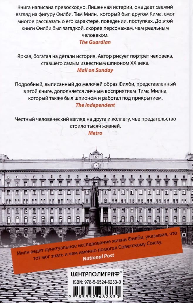 Автор мемуаров Тим Милн - друг и ближайший соратник агента советской разведки Кима Филби по МИ-6, секретной разведывательной службе Великобритании. Книга представляет собой откровенный в своих оценках рассказ о тридцатисемилетней дружбе, включившей десять лет тесной совместной работы, подробные воспоминания отношений двух близких людей, показанные как с личной, так и с политической стороны.
