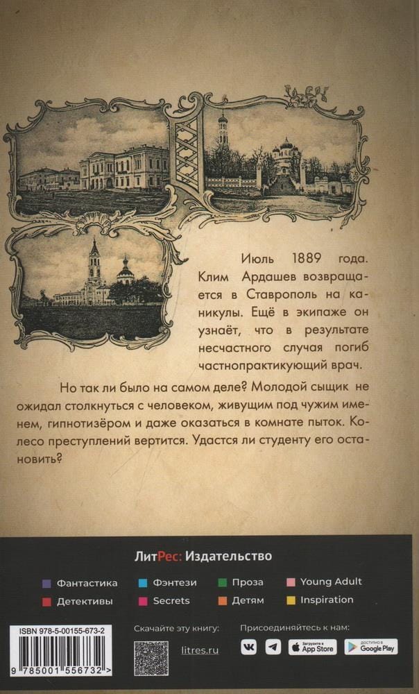 Июль 1889 года. Клим Ардашев возвращается в Ставрополь на каникулы. Ещё в экипаже он узнаёт, что в результате несчастного случая погиб частнопрактикующий врач. Но так ли было на самом деле? Молодой сыщик не ожидал столкнуться с человеком, живущим под чужим именем, гипнотизёром и даже оказаться в комнате пыток. Колесо преступлений вертится. Удастся ли студенту его остановить?