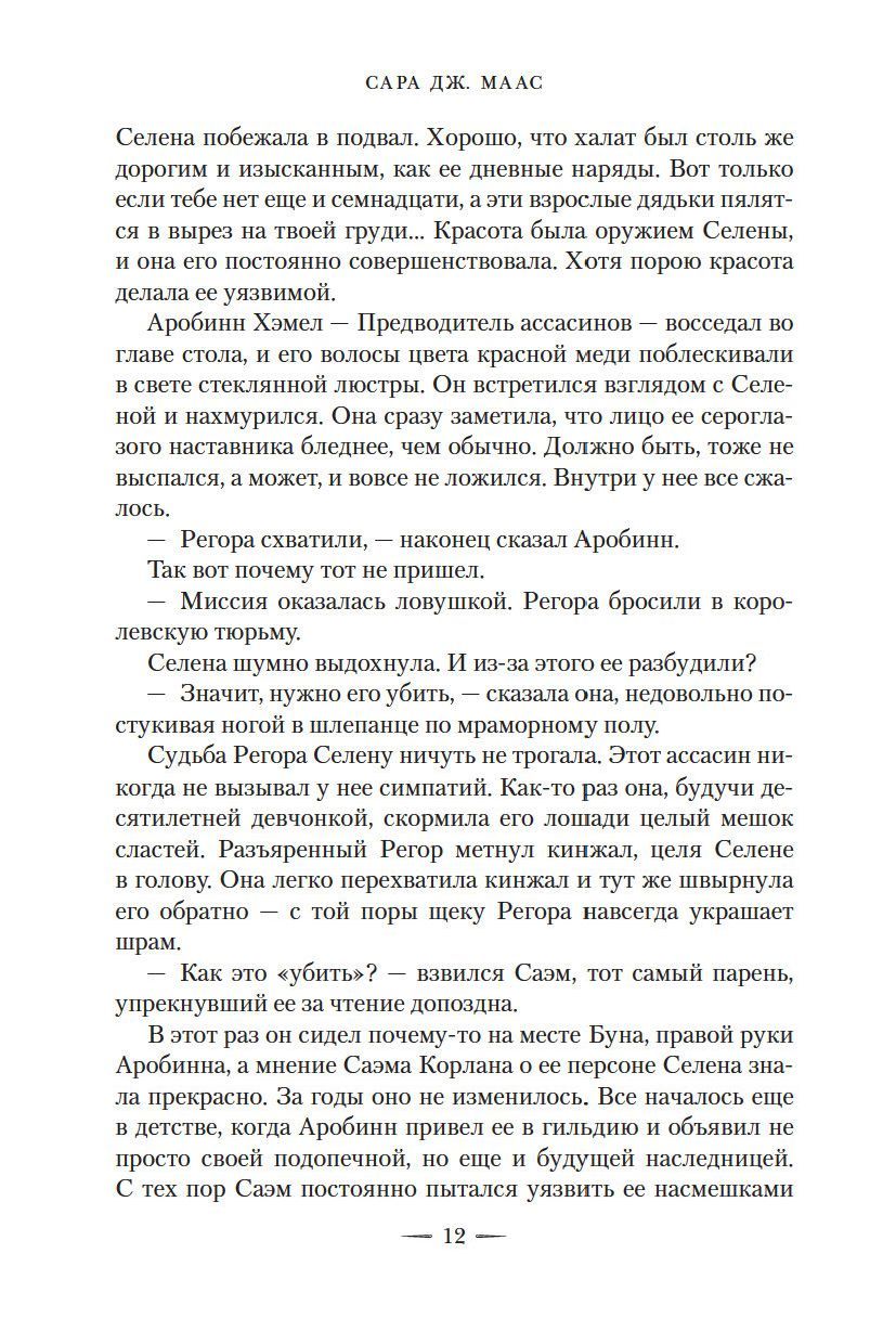 Если вы читали «Стеклянный трон», дебютную книгу Сары Дж. Маас, вам не надо представлять ее героиню, восемнадцатилетнюю Селену Сардотин, самую известную женщину-ассасина во всем Адарлане. В этой книге вы найдете ее новые приключения — вместе с Селеной отправитесь в Бухту Черепов, город пиратов, попадете в зловещую Красную пустыню, оплот Молчаливых ассасинов, будете уходить от преследования в мрачных подземельях Рафтхола, столицы адарландского королевства, схватитесь в жестоком поединке с предводителем преступного мира... И помните, если с вами Селена, у вас есть шанс на победу, в какую бы опасную переделку вы не попали.