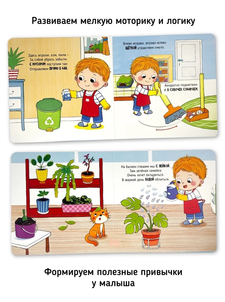 «Пора делать уборку» — это увлекательная интерактивная книга из серии Я сам, которая откроет вашему малышу двери в мир самостоятельности! Вместе с дружелюбным героем детской развивашки юные читатели познакомятся с основами поддержания чистоты и порядка в своем окружении, а также научатся важности совместной работы и ответственности за свои действия.