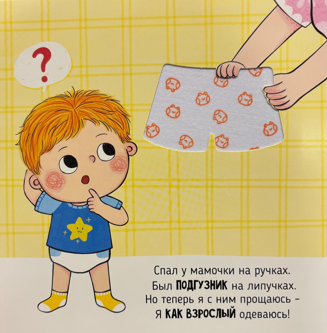 Малышам подгузник нужен, чтоб не сесть в свою же лужу. Я большим и взрослым стал. Снял его, чтоб не мешал. И теперь не знаю бед: сам хожу я в туалет.