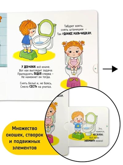 «Пора в туалет» — это увлекательная интерактивная книга из серии Я сам, которая откроет вашему малышу двери в мир самостоятельности! Вместе с дружелюбным героем детской развивашки юные читатели познакомятся с важностью самостоятельного посещения туалета.