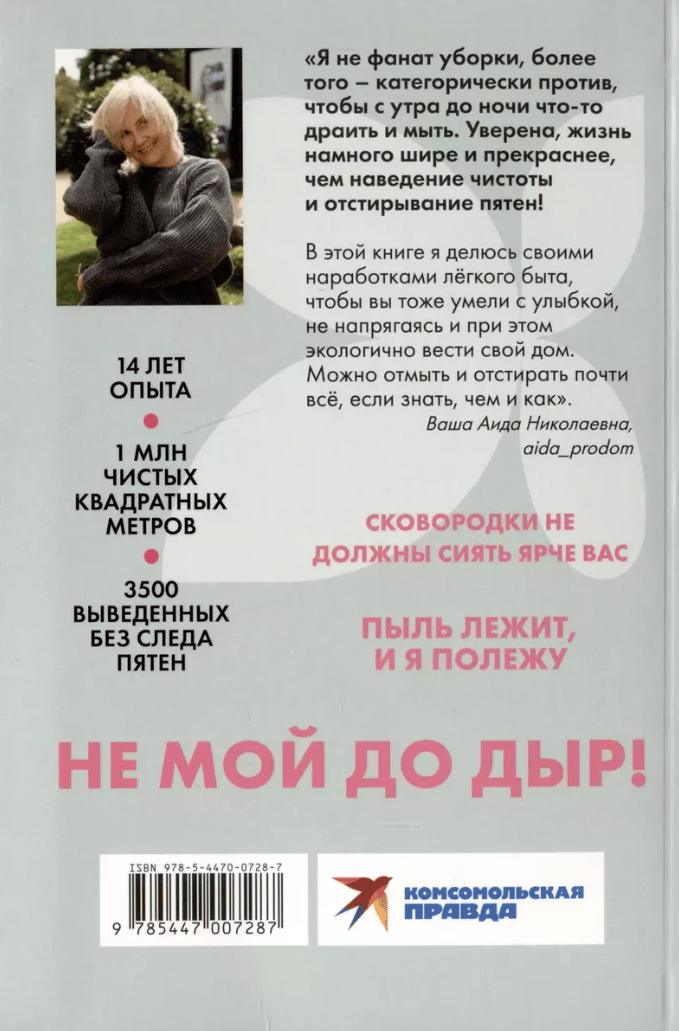 Эксперт по клинингу №1 в России с 20-летним опытом Аида Синицына, автор популярного блога aida_prodom, делится профессиональными советами, чтобы вы умели грамотно и не напрягаясь, при этом экологично вести быт. Вы узнаете максимум про бюджетные подручные средства. Например, как убрать пятна от ягод на футболках простым кипятком, пятна на белой мебели и плинтусах – школьным ластиком, а липкий слой на бытовой технике и оконных рамах – эфирным маслом апельсина; как вернуть тюлю белоснежный вид, используя соду; как отмыть только долькой лимона смесители, краны и раковины. И еще множество других подсказок для легкого ненапряжного быта. Автор убеждена, что домоводство может быть азартным, приятным и не отнимающим много времени и денег процессом. Книга будет полезна всем, кто любит (и не очень) наводить чистоту и порядок в квартире.