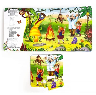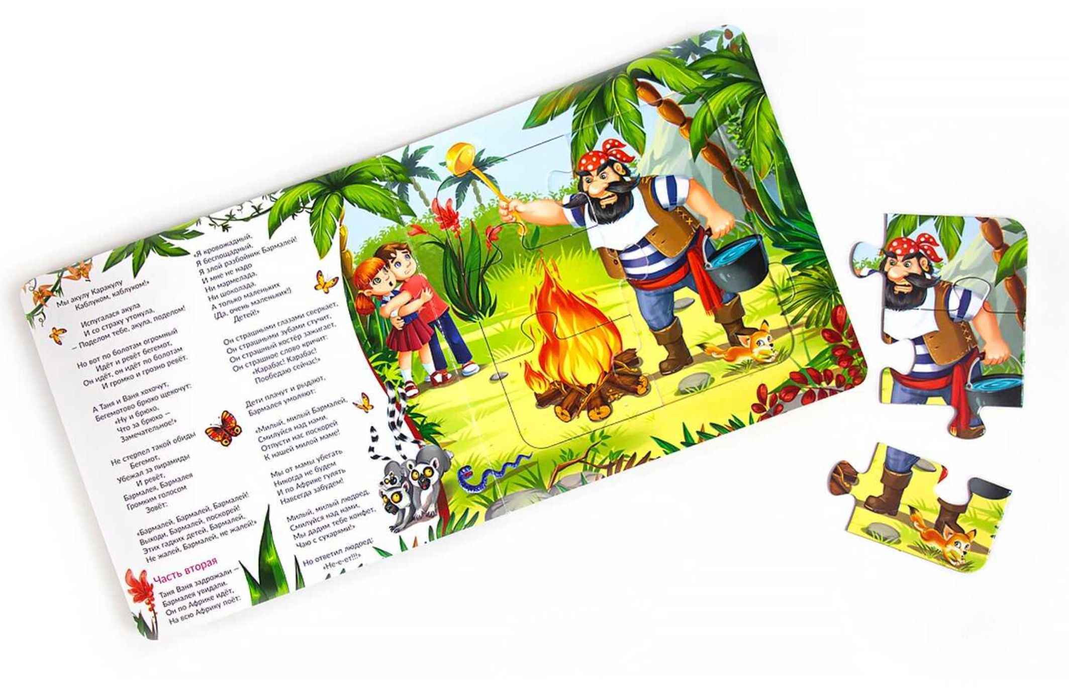 Книжка-пазл «Бармалей» - это первое знакомство с детской литературой в игровой форме. Внутри книжки 5 ярких пазлов из 6 крупных деталей с интересными иллюстрациями по мотивам сказки Корнея Чуковского. Пазлы помогут вашему ребенку развить логику, фантазию и мелкую моторику рук. Играйте и читайте книгу вместе - проводите время с пользой!