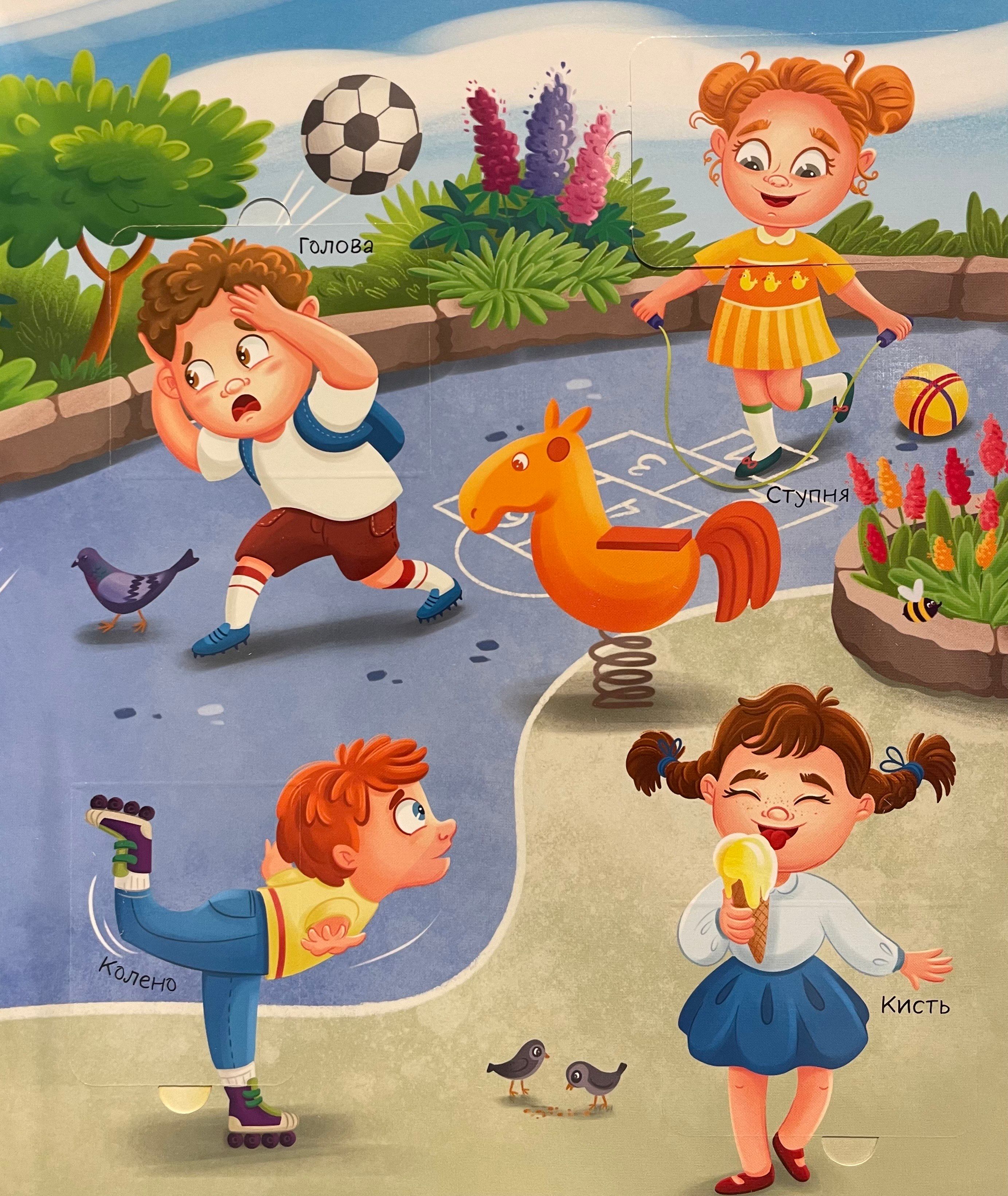 «Книги с окошками для малышей и малышек» - серия полезных книг для детей. На каждом развороте яркие современные иллюстрации, небольшое задание и окошки, под которыми спрятаны интересные факты! Ребёнок познакомится со стороением челвеческого тела и узнает ответы на множество вопросов: сколько костей у человека? Зачем нам скелет? Почему мы чихаем?