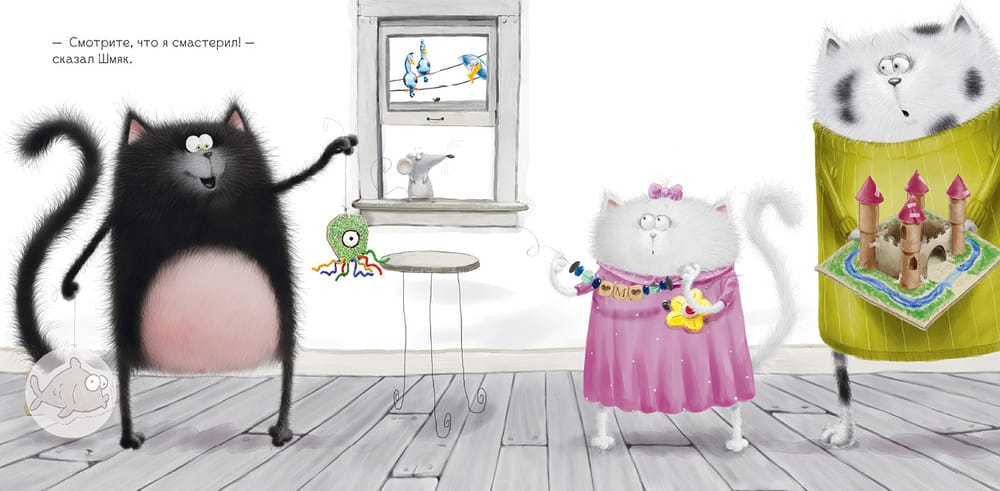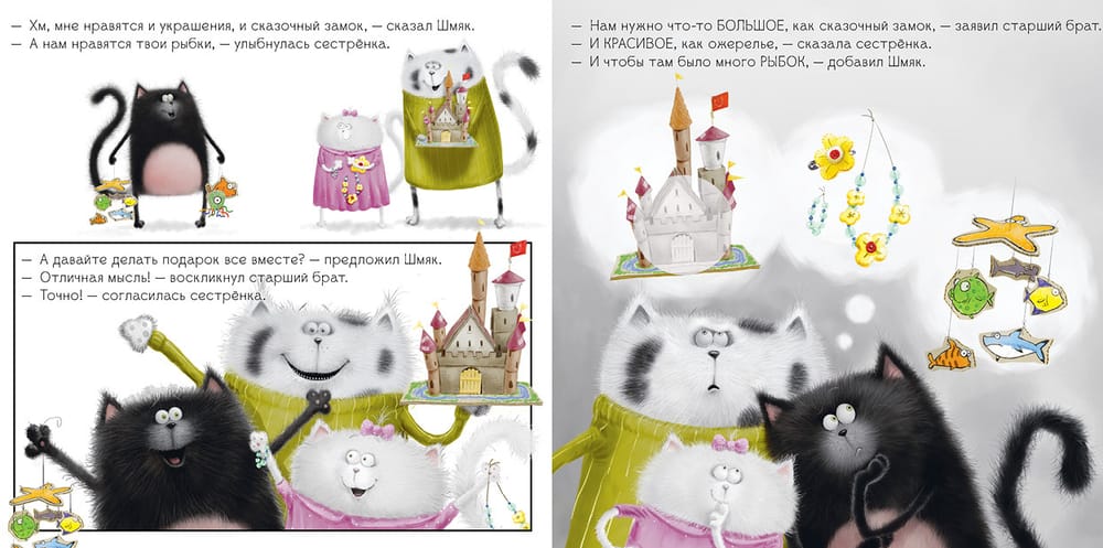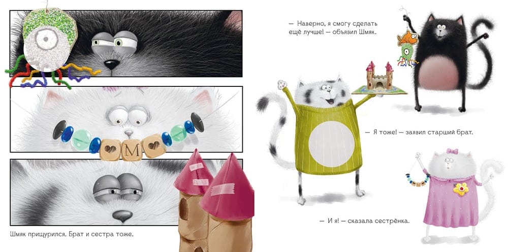 Шмяк решил приготовить самый лучший подарок для мамы и папы. Но его брат и сестрёнка не отстают от него и мастерят замечательные поделки. «Надо объединить усилия», — решили котята. Они старались изо всех сил. Но смогут ли они порадовать родителей?