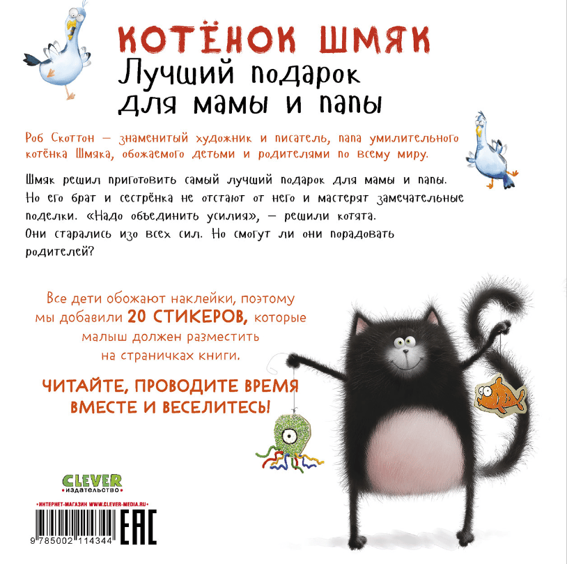 Книжка с наклейками. Котенок Шмяк. Лучший подарок для мамы и папы