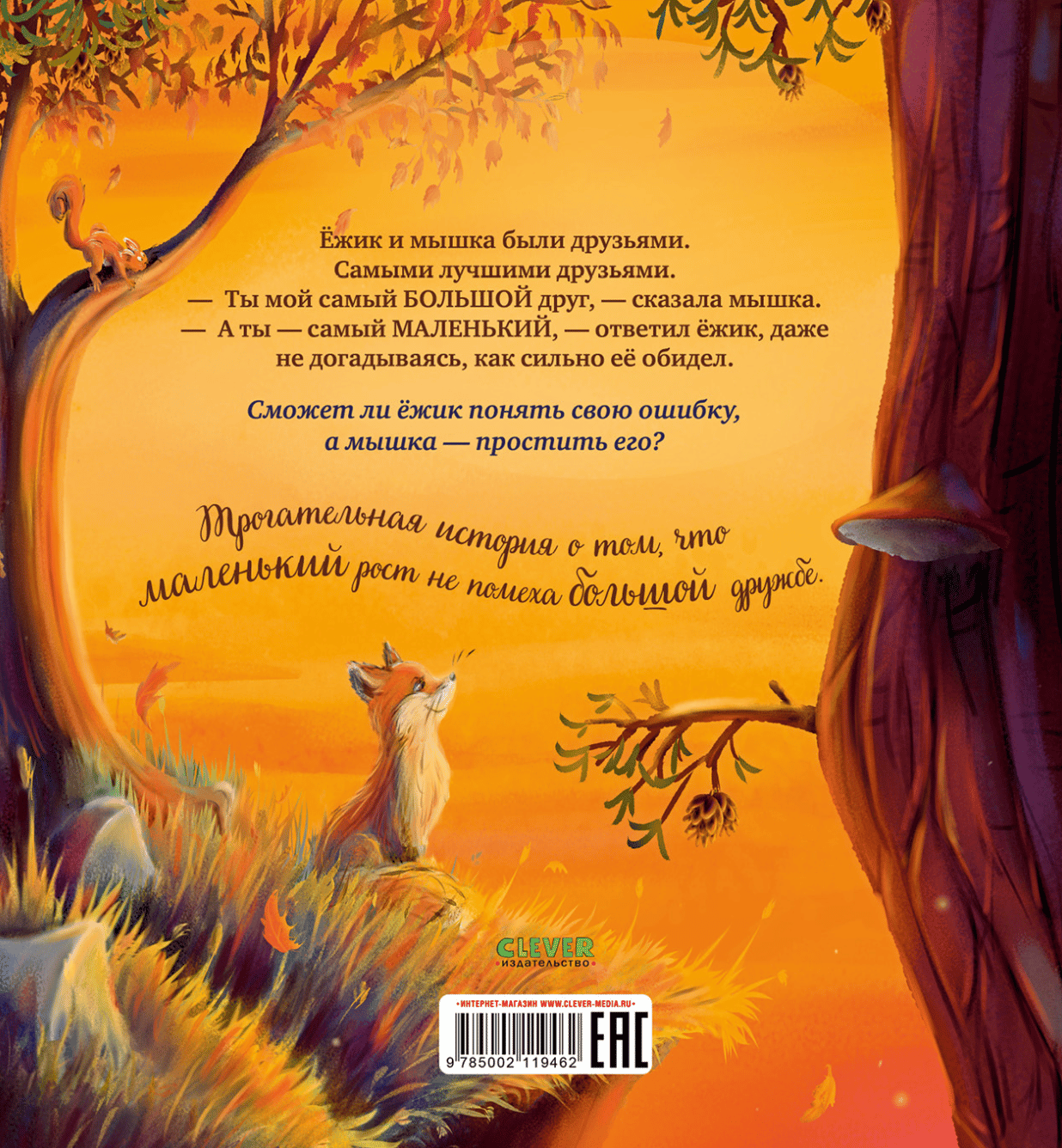 Ёжик и мышка были друзьями. Самыми лучшими друзьями. «Ты мой самый большой друг», — сказала мышка. «А ты — самый маленький», — ответил ёжик, даже не догадываясь, как сильно её обидел.