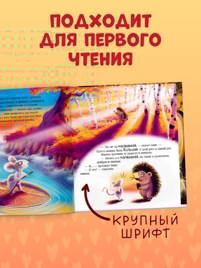 Новая книжка про ежика и мышку — в удобной мягкой обложке. Трогательная история о том, что маленький рост не помеха большой дружбе.