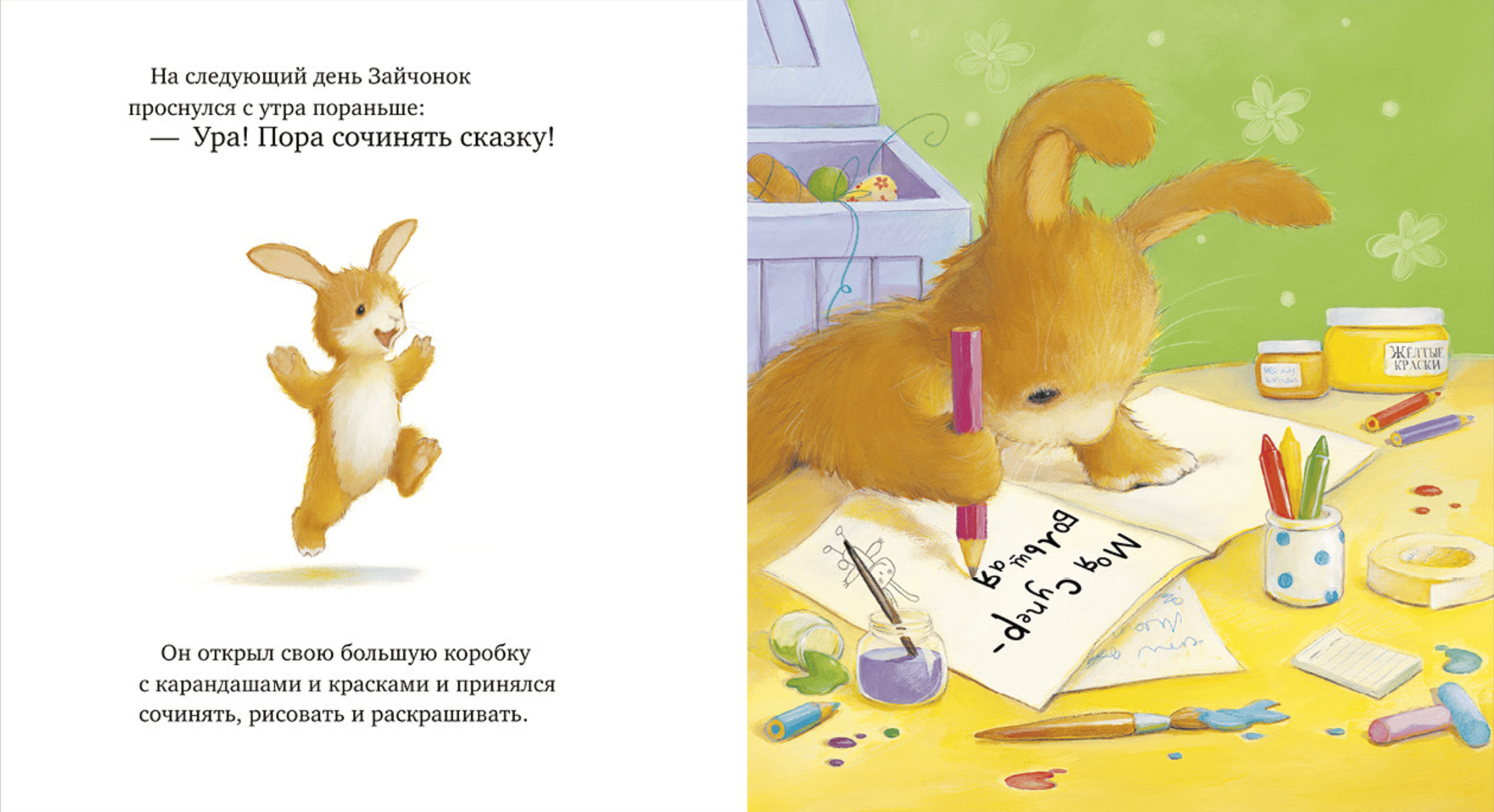 В героях книжки-картинки «Лучшая сказка на ночь для Зайчонка» маленькие читатели и их родители легко могут узнать самих себя.