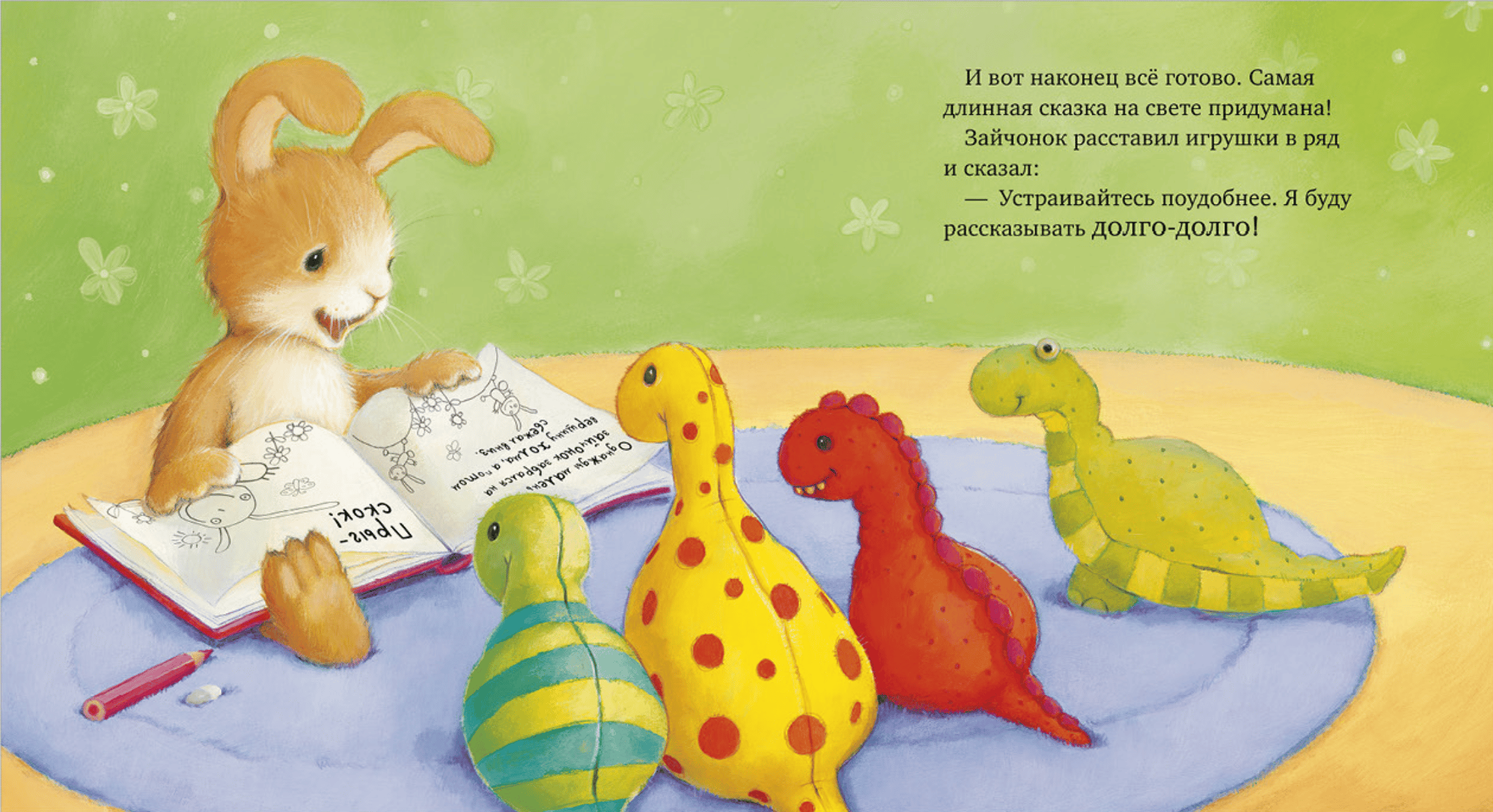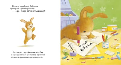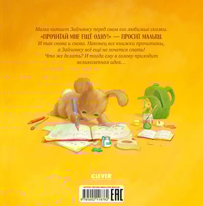 Мама читает Зайчонку перед сном его любимые сказки. «Прочитай мне еще одну!» — просит малыш. И так снова и снова. Наконец все книжки прочитаны, а Зайчонку все еще не хочется спать! Что же делать? И тогда ему в голову приходит великолепная идея…