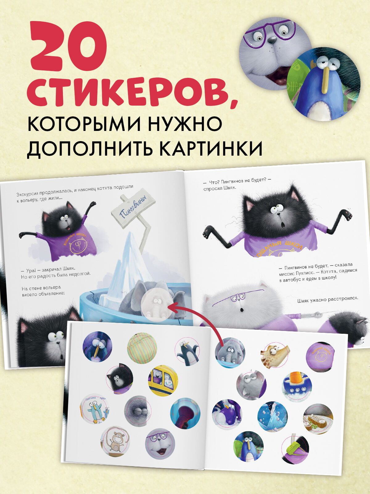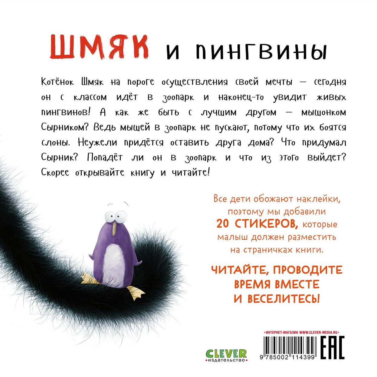 «Шмяк и пингвины. Книжка с наклейками» — веселая история о чудесном котенке и его друзьях, на этот раз — с удивительным сюжетом и неожиданным финалом.